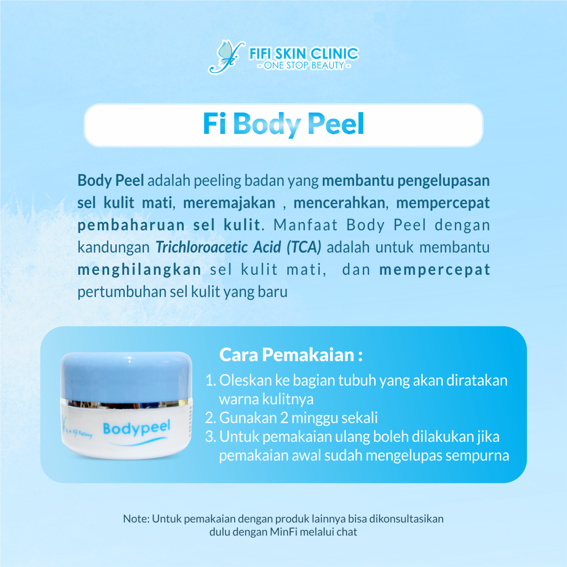 Body Peel adalah peeling badan yang membantu pengelupasan sel kulit mati, meremajakan , mencerahkan, mempercepat pembaharuan sel kulit